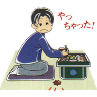 | A.こぼした上に小麦粉、塩、ベビーパウダー、クレンザー等の粉末をふりかけ、